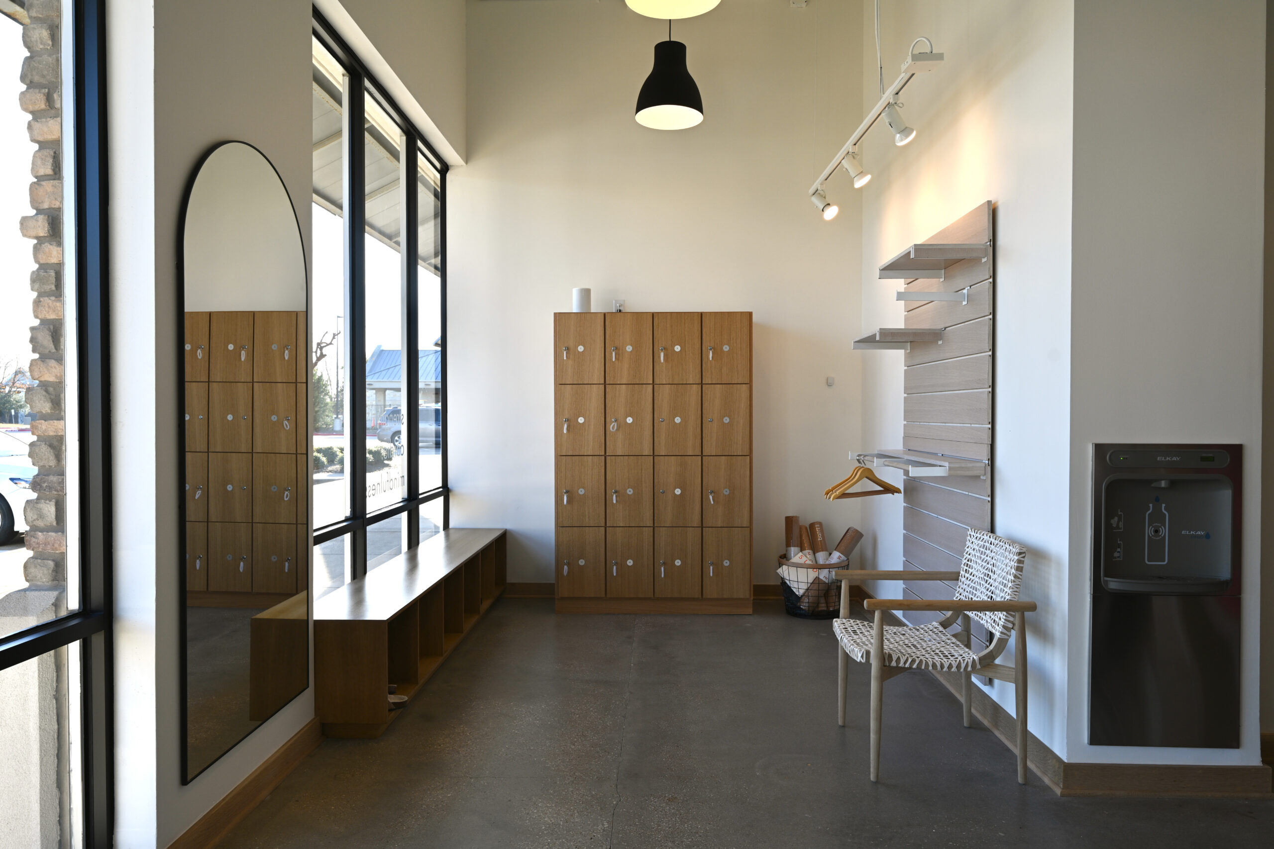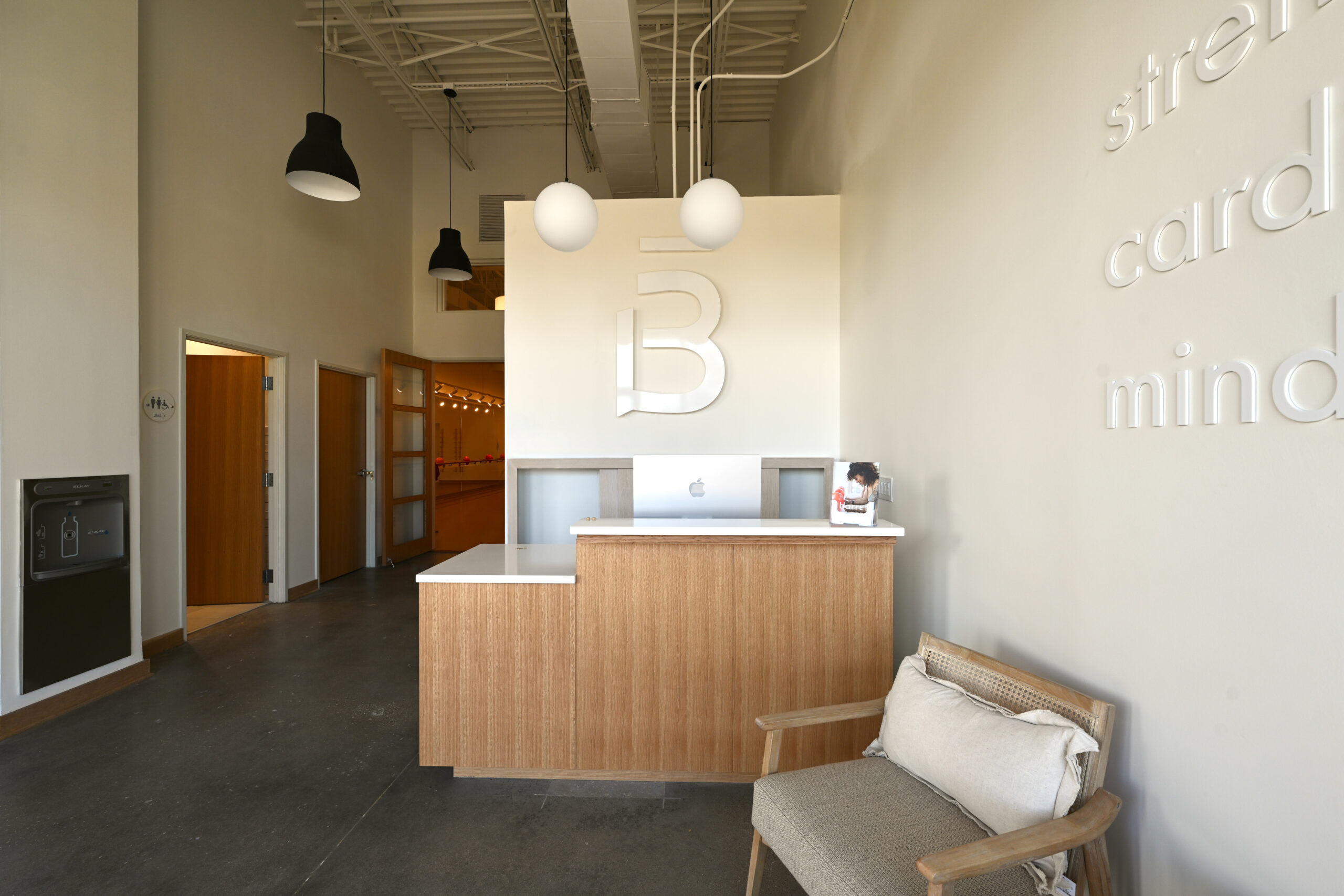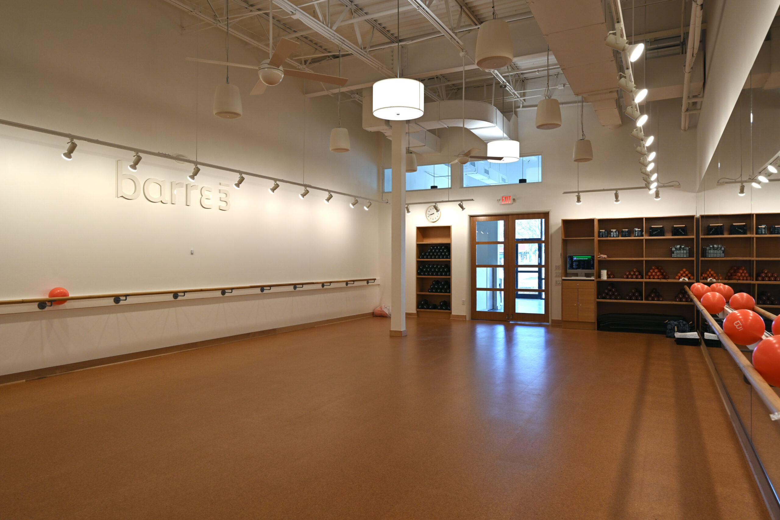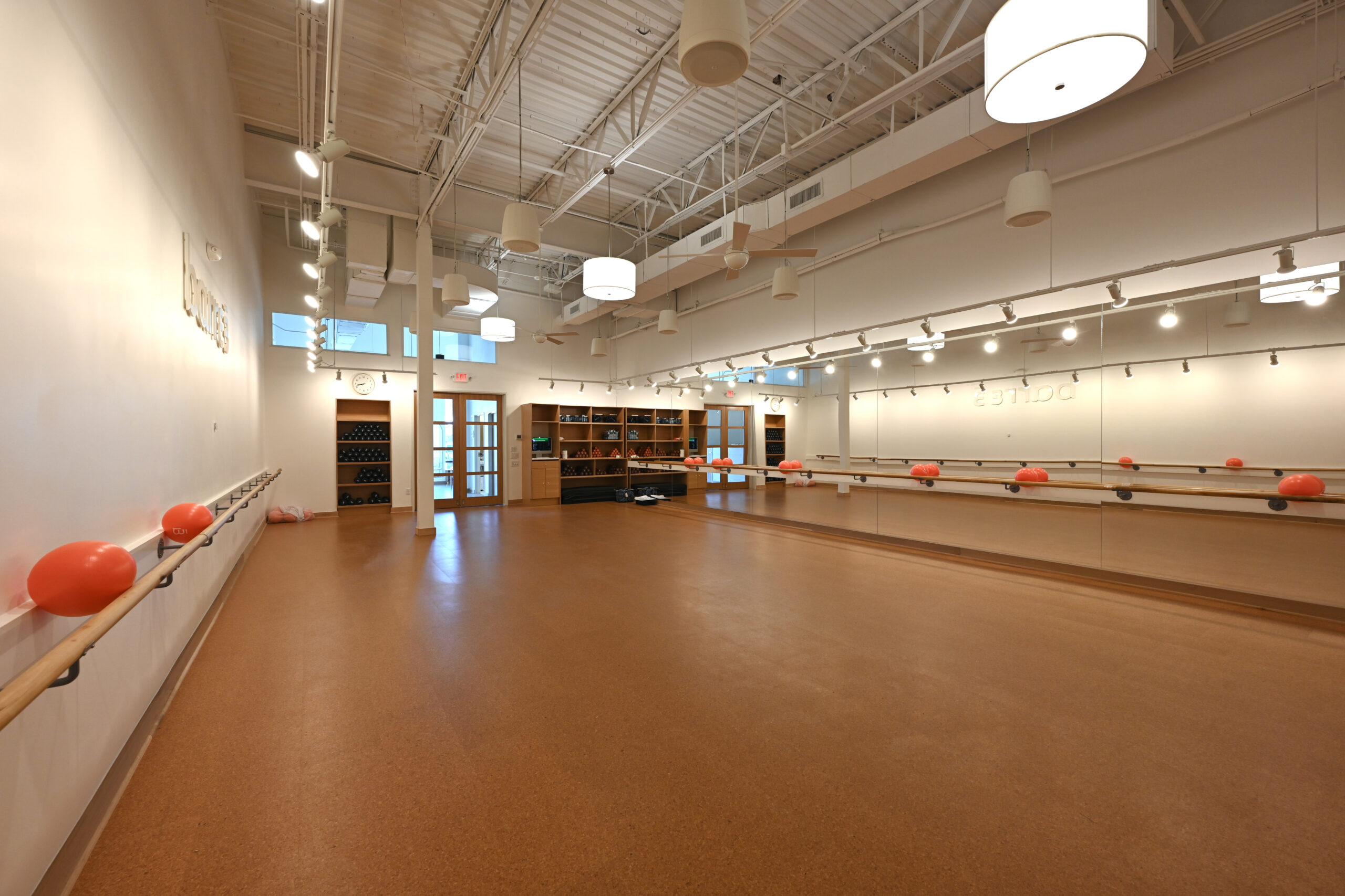 - Included a custom ballet-inspired wood barre, cork flooring, and a curated lighting package.