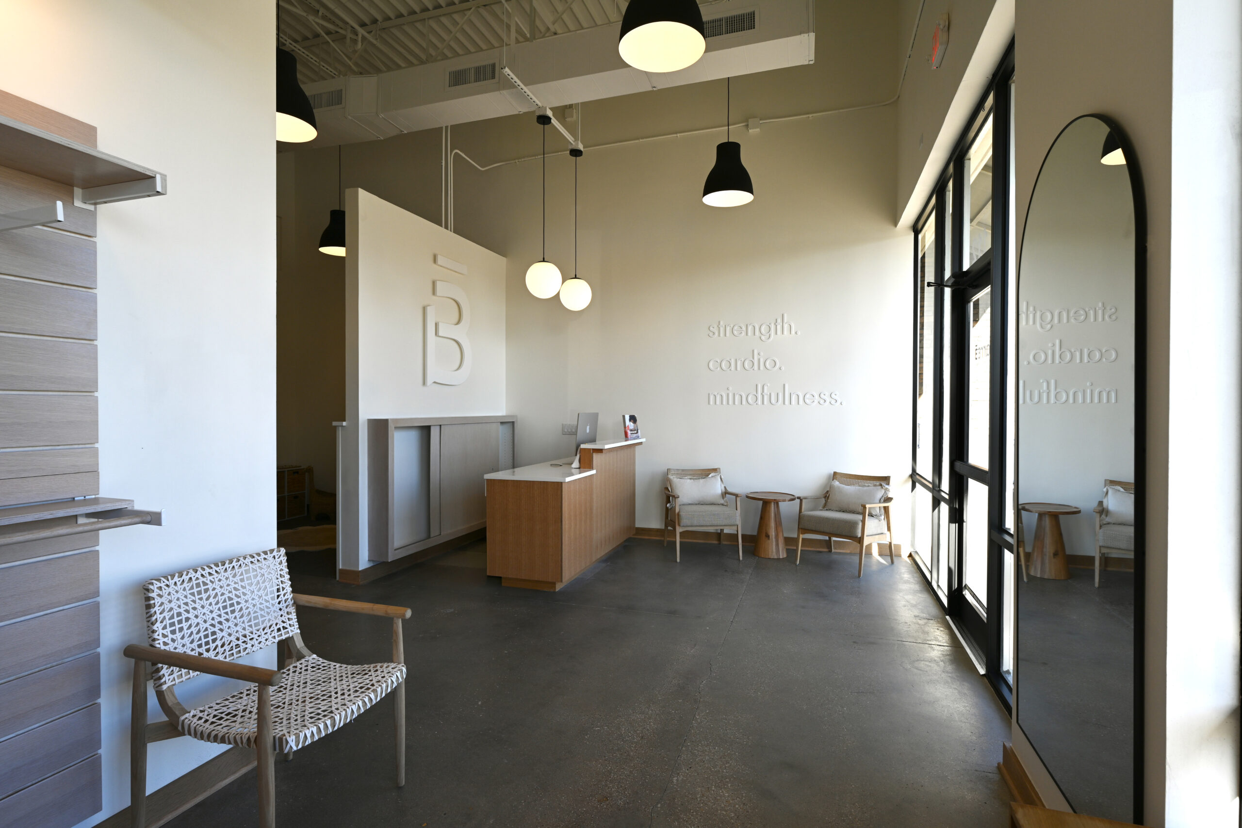 - Transformation of a second-generation retail space into a boutique fitness studio for full-body workouts.
