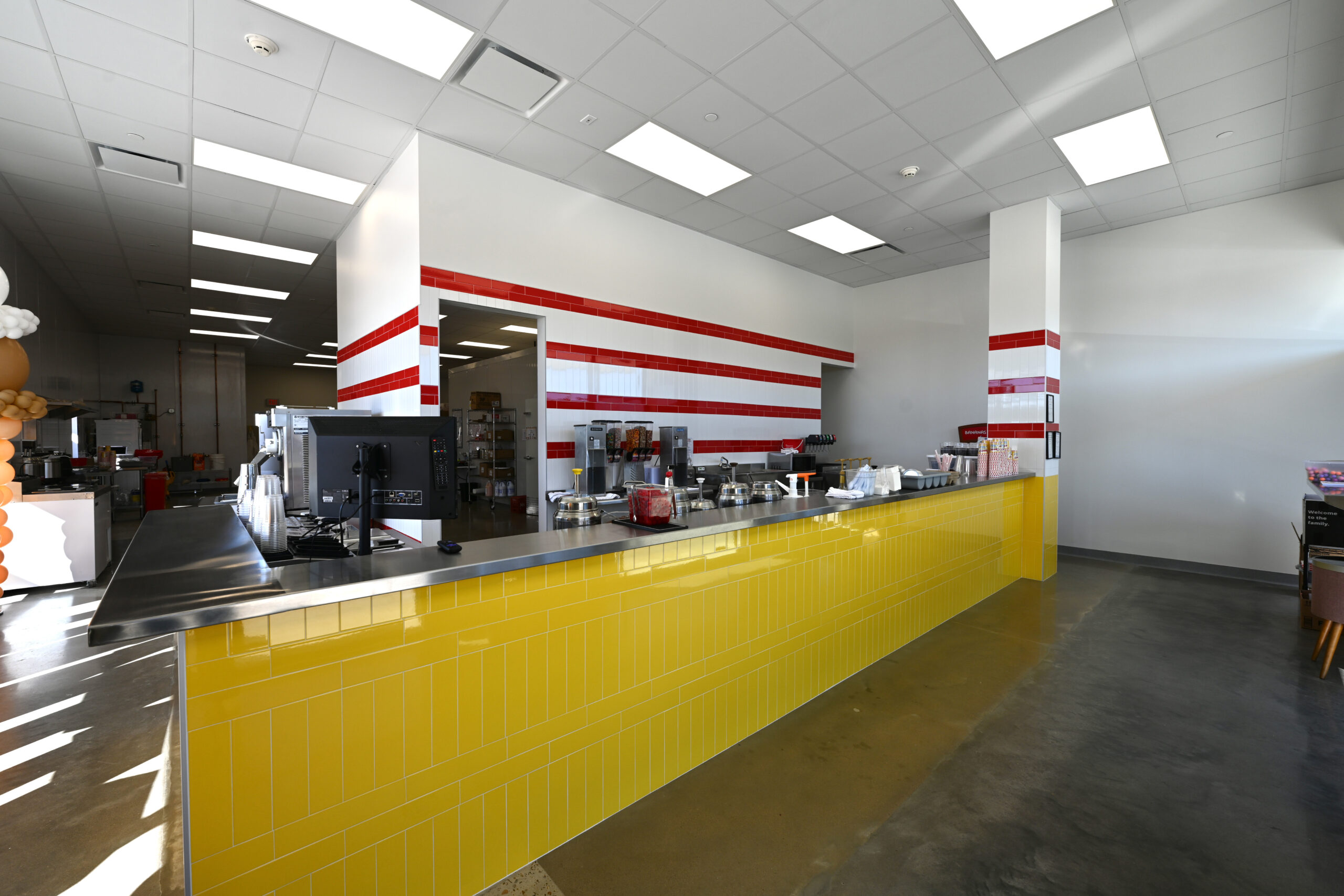 Added (3) QuikServ transaction windows to the shell façade for walk-up and drive-thru service